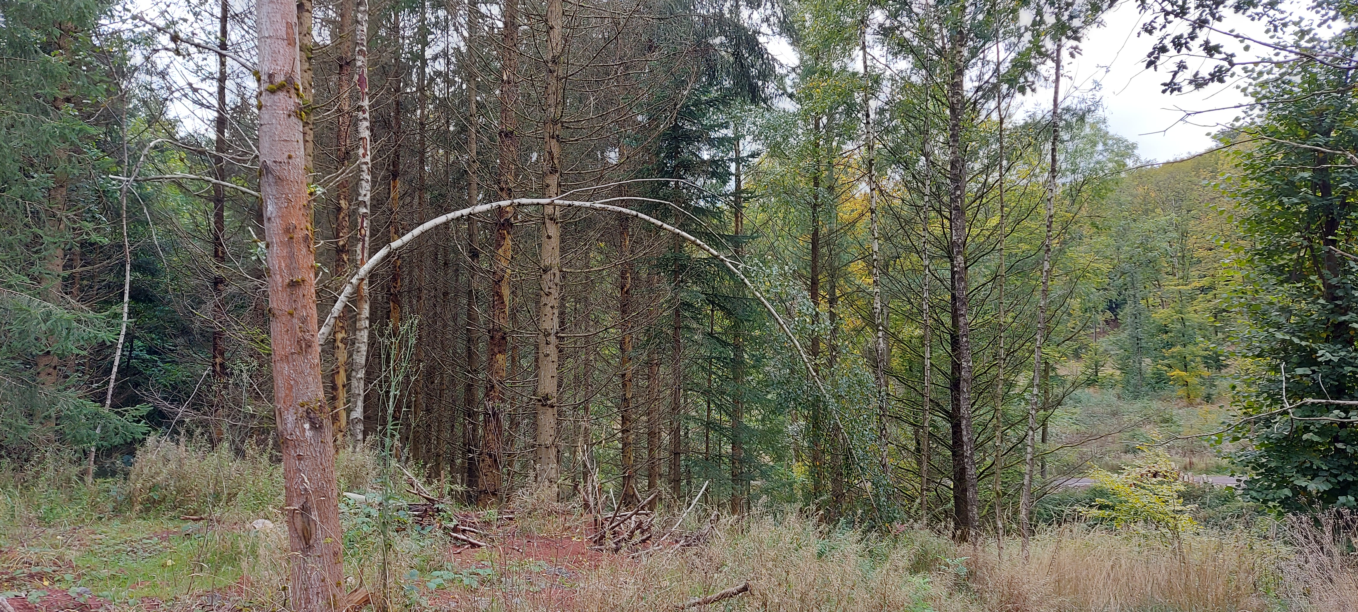 Es war zwar recht frisch und keine Sonne, aber trocken. Gutes Laufwetter. Aber gut, dass ich jetzt besser beschuht bin. Auf Halbschuhen wäre das eine Katastrophe geworden. Es gab breite Wege, steile Wege rauf oder runter, schmale Pfade auf und ab. Bin stolz und zufrieden: Habe mich nicht verlaufen, Der weg war zwar länger, aber das lag an momentanen Wegsperrungen wegen Forstarbeiten. Den Matsch mochte ich sogar meinen Wanderstiefeln nicht zumuten.