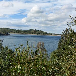 Doch weiter des Weges zur Granetalsperre, immer auf dem Försterstieg. Dort angekommen gab es ein kurzes Päuschen und einen netten Plausch mit einer jungen Frau, die sich dort auch von ihrer Wanderung ausruhte. von ihr bekam ich sogar noch Tipps für den nächsten Tag. Den Rückweg wollte ich eigentlich über einen anderen Weg nehmen, musst aber nach einer Weile feststellen, dass ich meine Garminuhr verloren hatte. Viel Hoffnung hatte ich ja nicht, aber ich wollte es doch versuchen und bin den Weg zur Stempelstelle zurück gelaufen. Dort war ich beim Weggehen kurz ins Stolpern geraten... vielleicht...