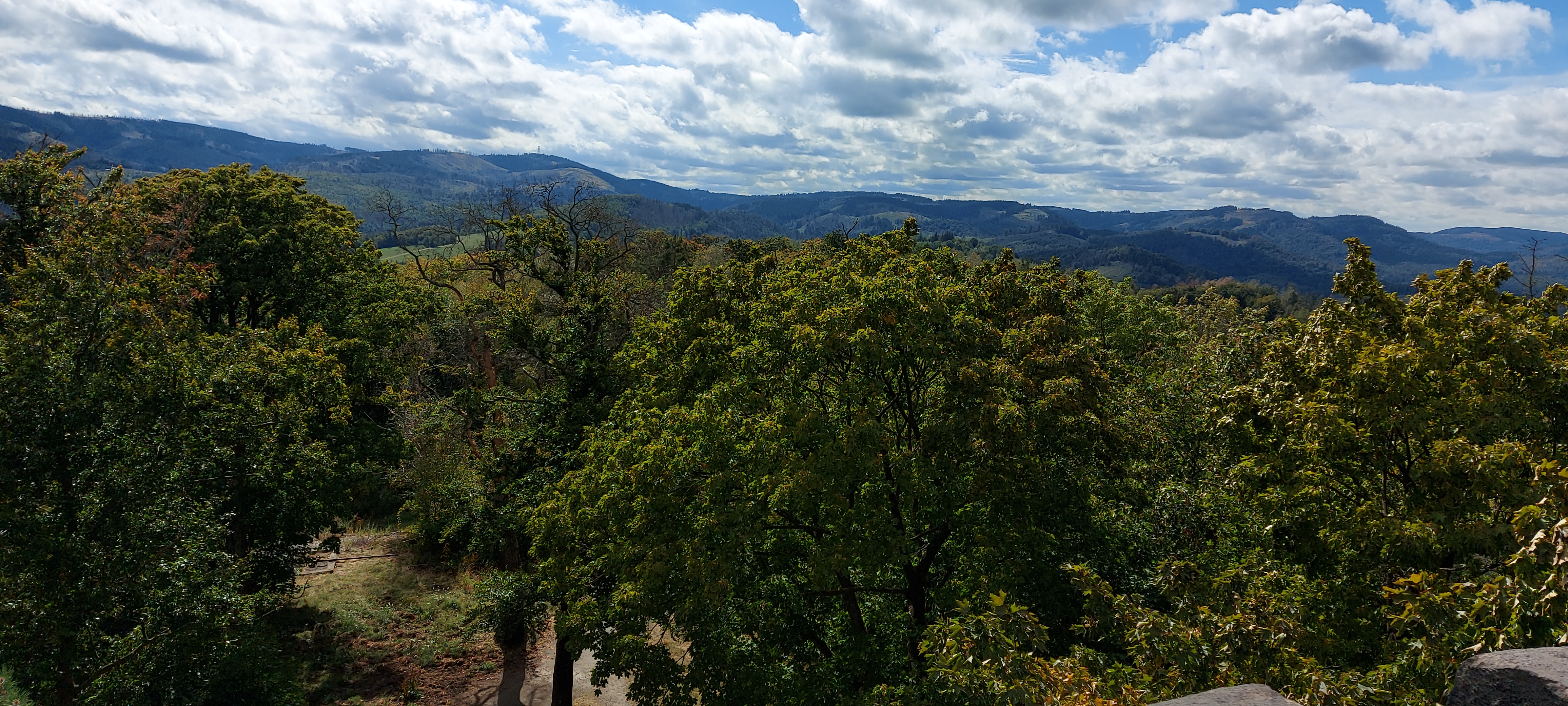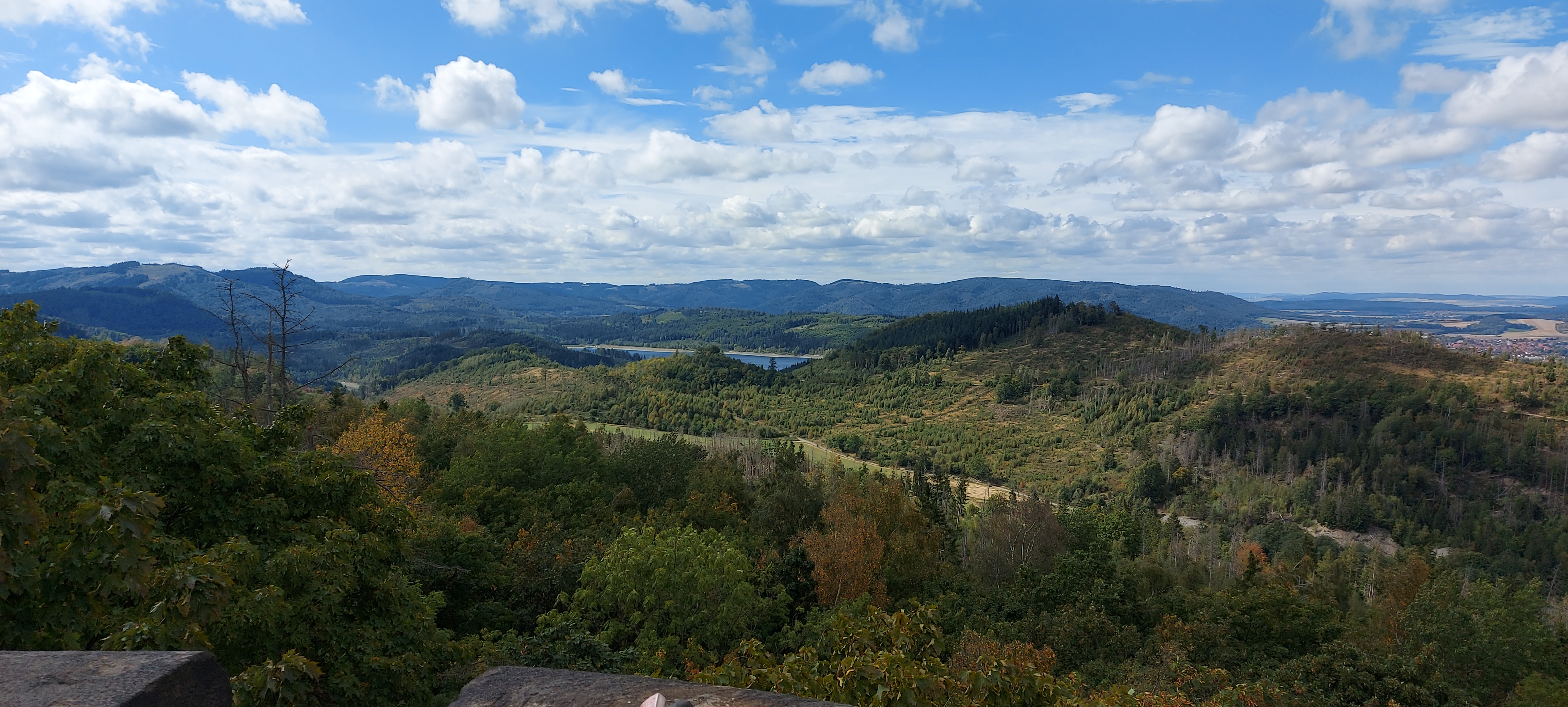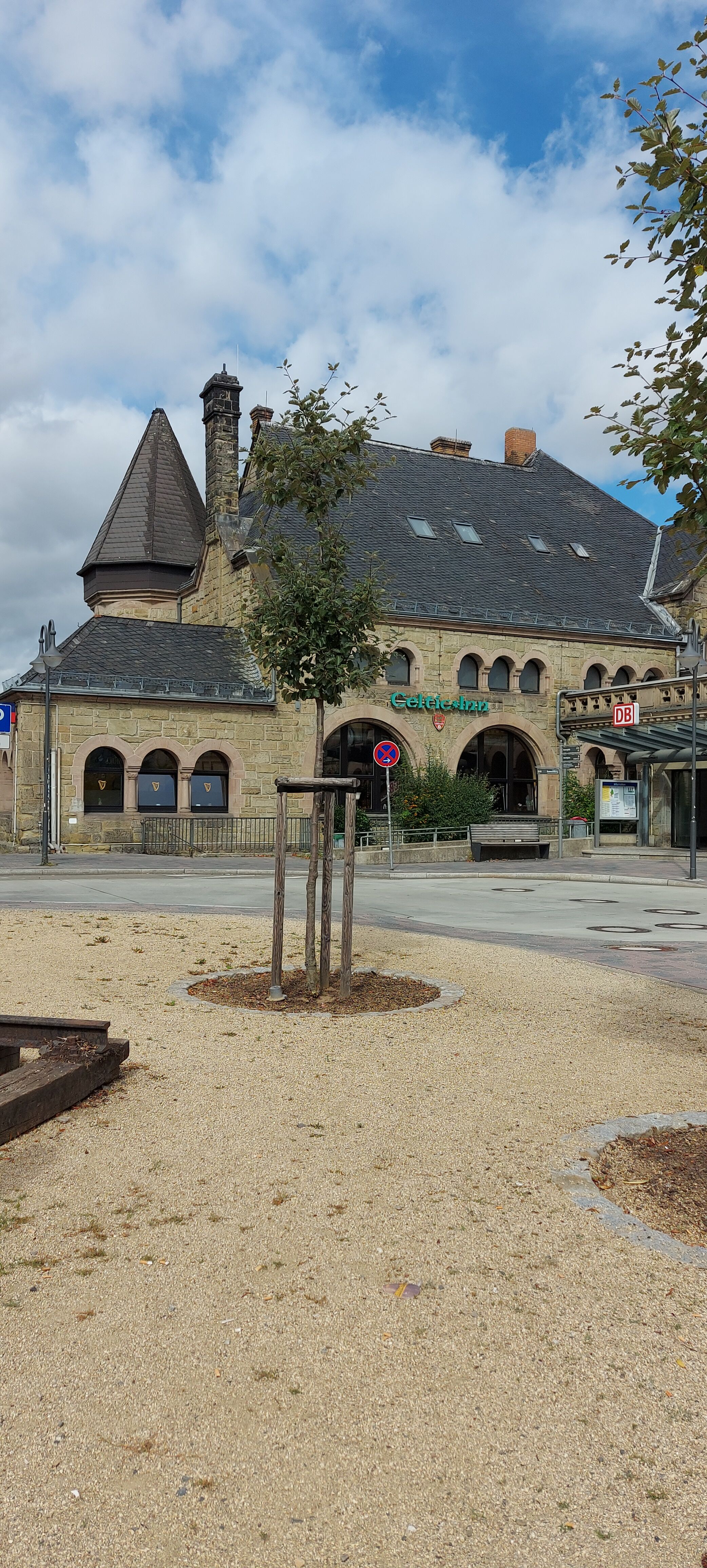 Sonst verlief die Hinreise planmäßig, keine nennenswerten Verspätungen. Damit war ich sogar noch vor der anvisierten Ankunftszeit in Goslar, also noch einen Imbiss mit Blick auf das historische Bahnhofsgebäude und dann gaaanz langsam Richtung Pension. Natürlich ging es gleich stetig bergauf. Wie könnte es im Harz anders sein. Dafür war mein Zimmer aber schon fertig auch vor der Zeit, und ich konnte meine Sachen unterstellen, meinen Rucksack kurz auf Wanderung umstellen und meine erste Tour dieser Auszeit starten.