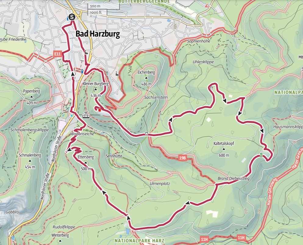 121 „Aussichtsreich“ Burgberg, 122 Kreuz des Deutschen Ostens, 170 Rabenklippe, 169 Molkenhaus