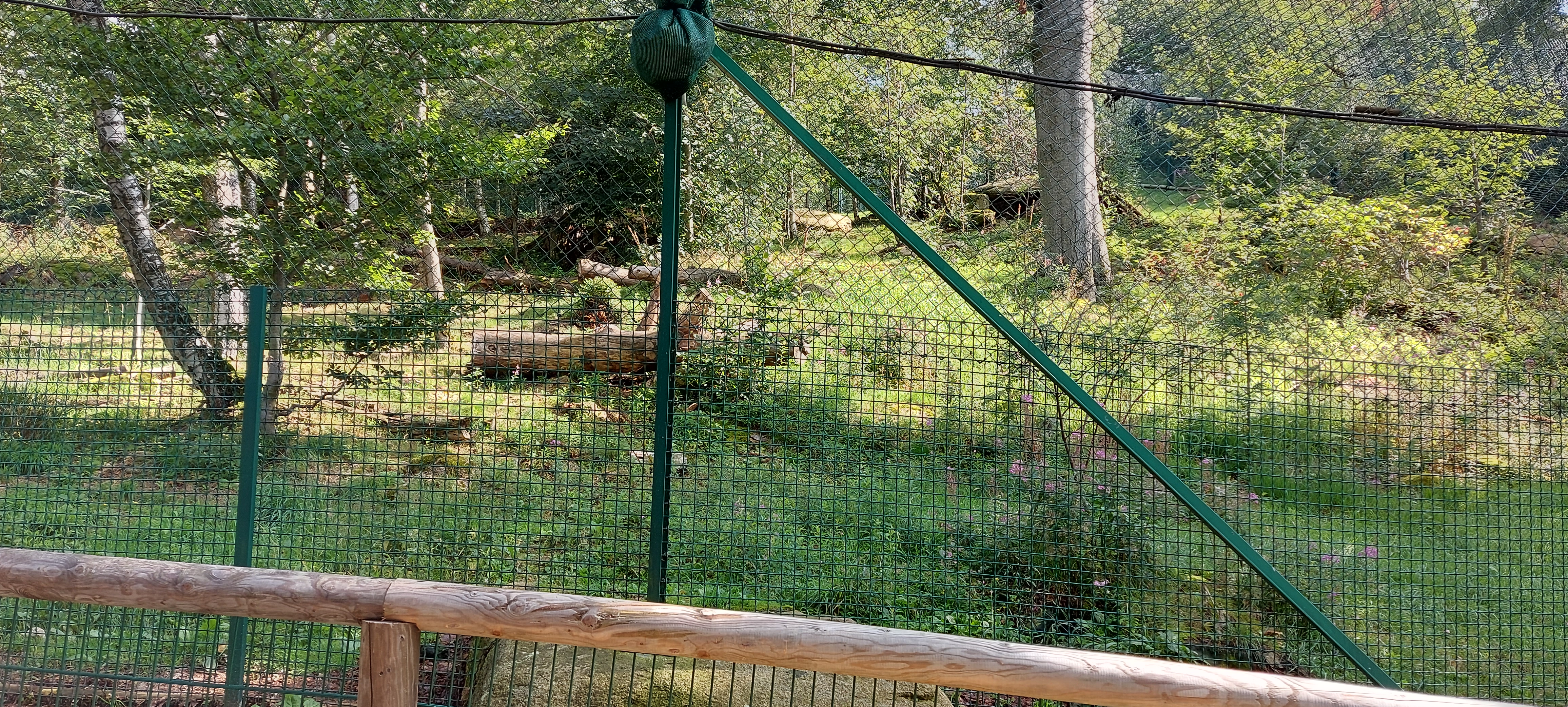 Im nachfolgenden Luchsgehege waren die Bewohner noch am Schlafen, keiner ließ sich blicken. Dabei war ich extra am Mittwoch, einem potentiellen Fütterungstag dort. Aber leider viel zu früh! Erst am frühen Nachmittag war die Fütterung angesetzt… Der frühe Vogel fängt den Wurm… aber er sieht keine Luchse. Aber auch ohne Luchse war die Tour sehr schön.