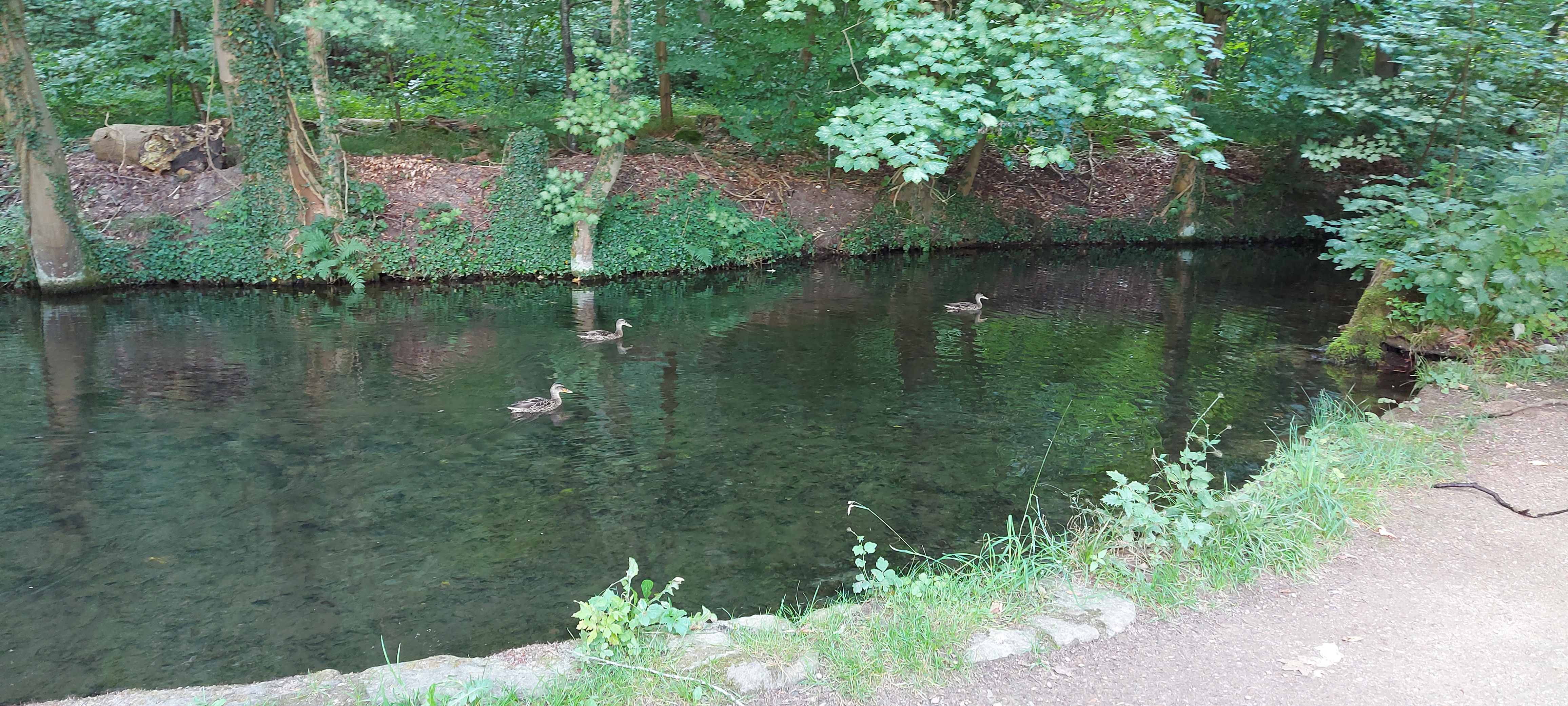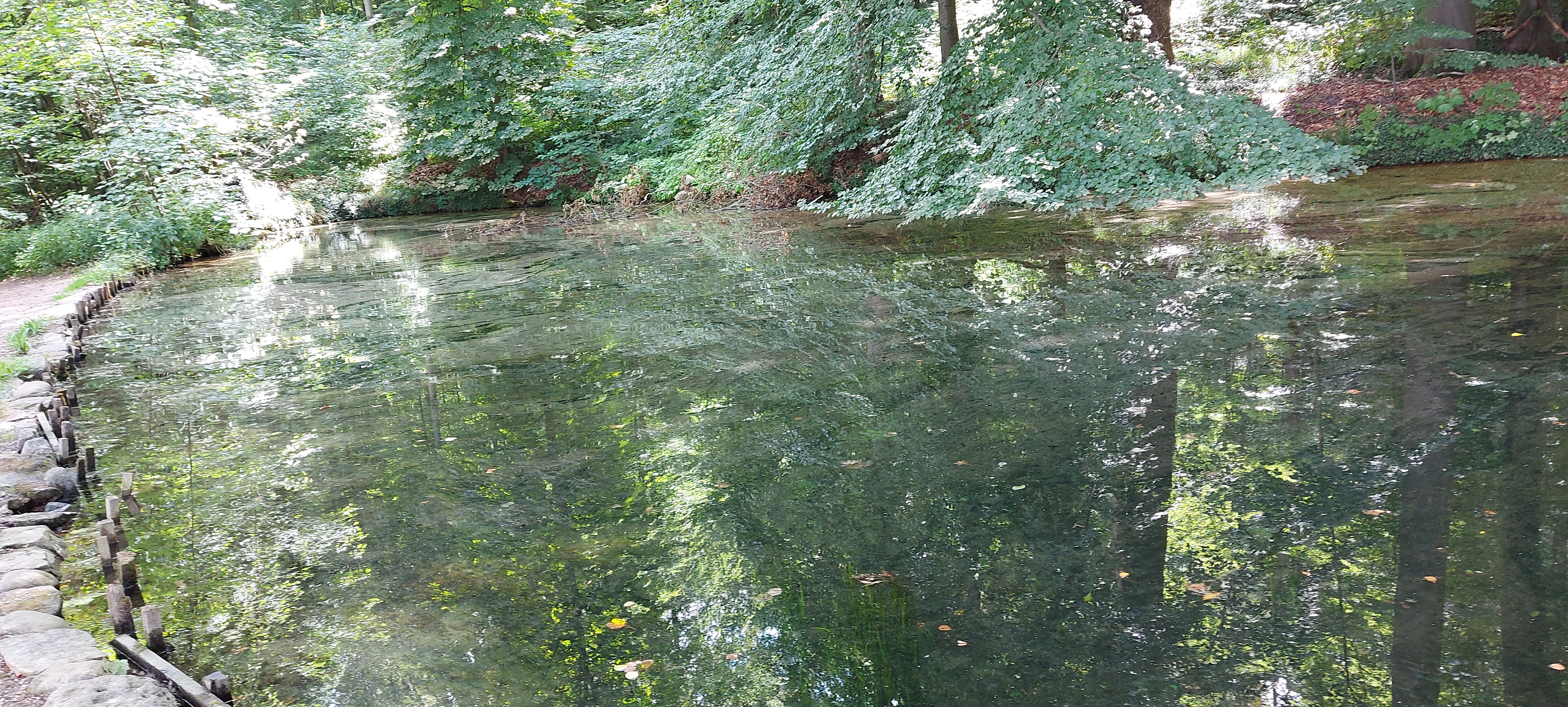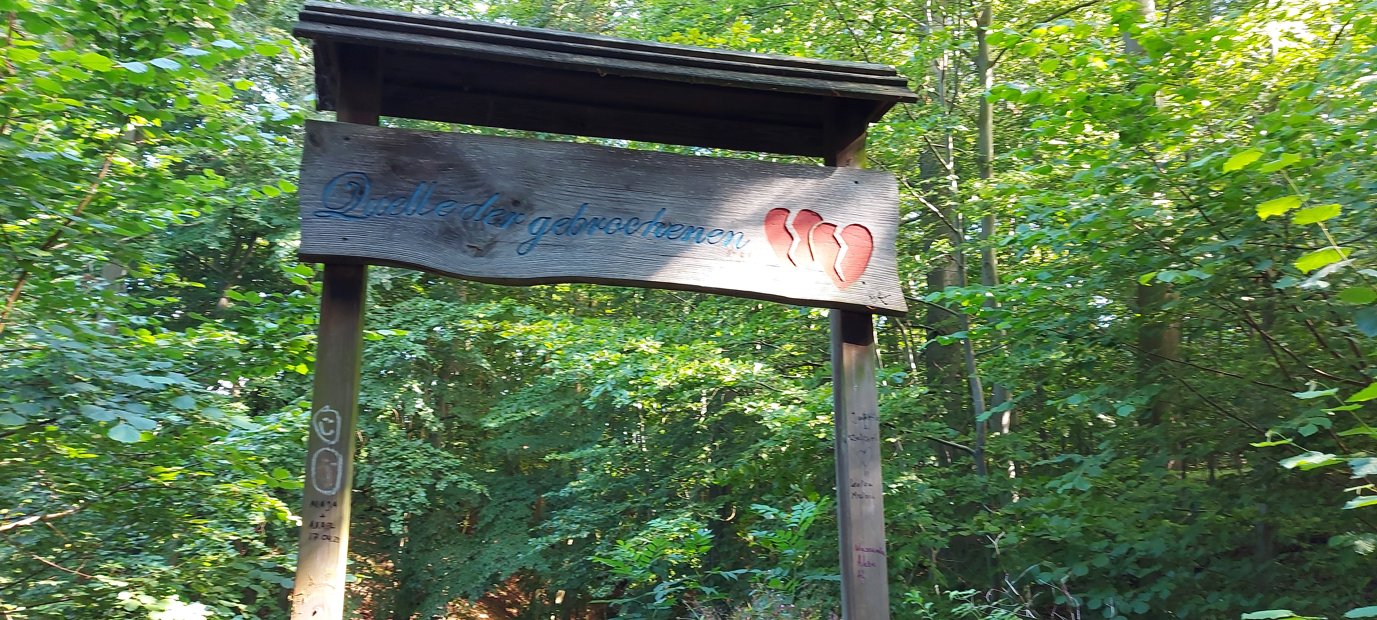 Ich hatte einen schönen passenden Parkplatz am Wildgehege gefunden und bin zum Rundweg Dieksee gestartet. Ein Abstecher zur Quelle der gebrochenen Herzen war natürlich auch drin, soviel Zeit muss sein. Leider hatte ich zunächst den Garmin-Tracker vergessen einzuschalten. Und als ich auf dem Rückweg von eben dieser Quelle dies nachholen wollte, war ich schon wieder in einem GPS-Loch und bekam sofort 82,34 km angezeigt. Es dauerte eine ganze Weile, bis ich einen vernünftigen Start hatte.