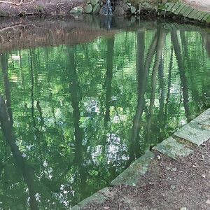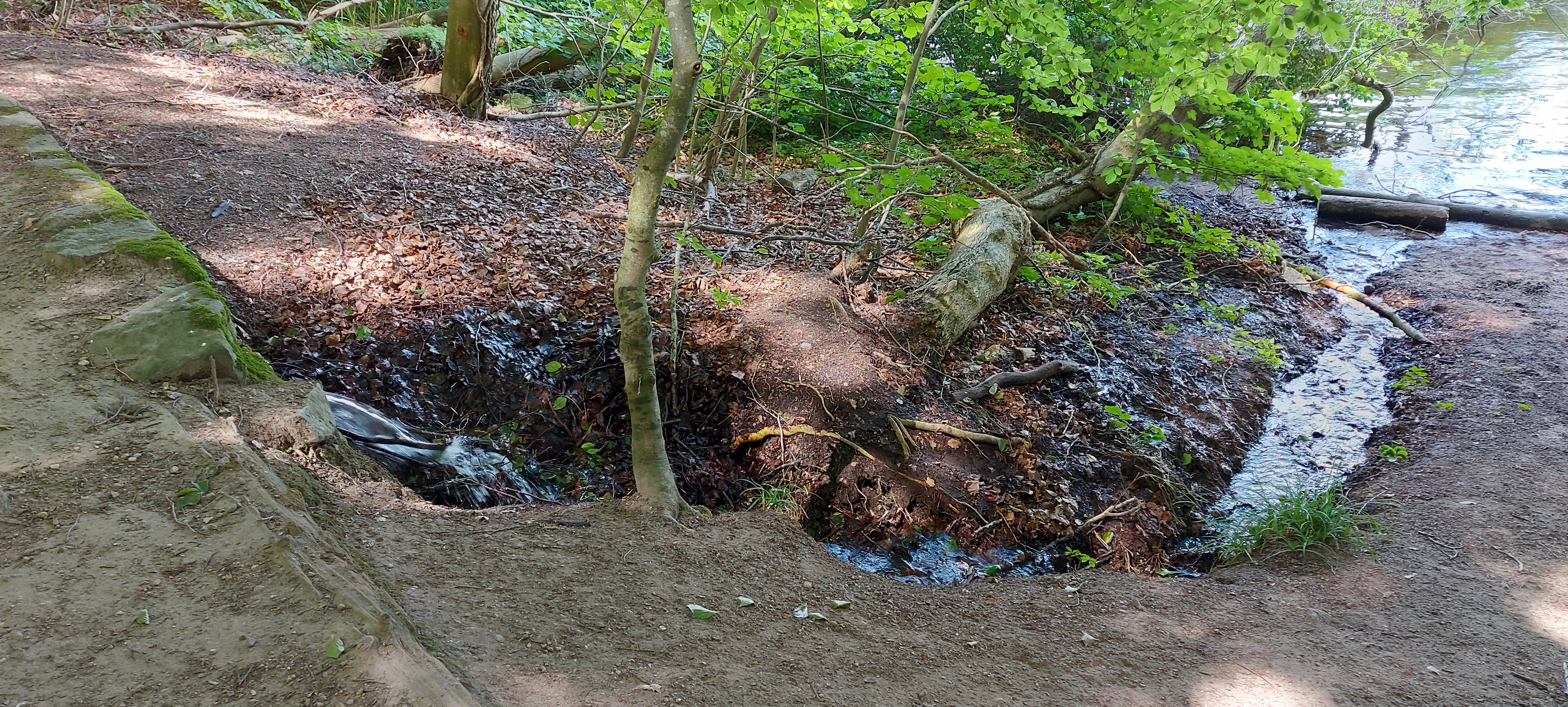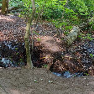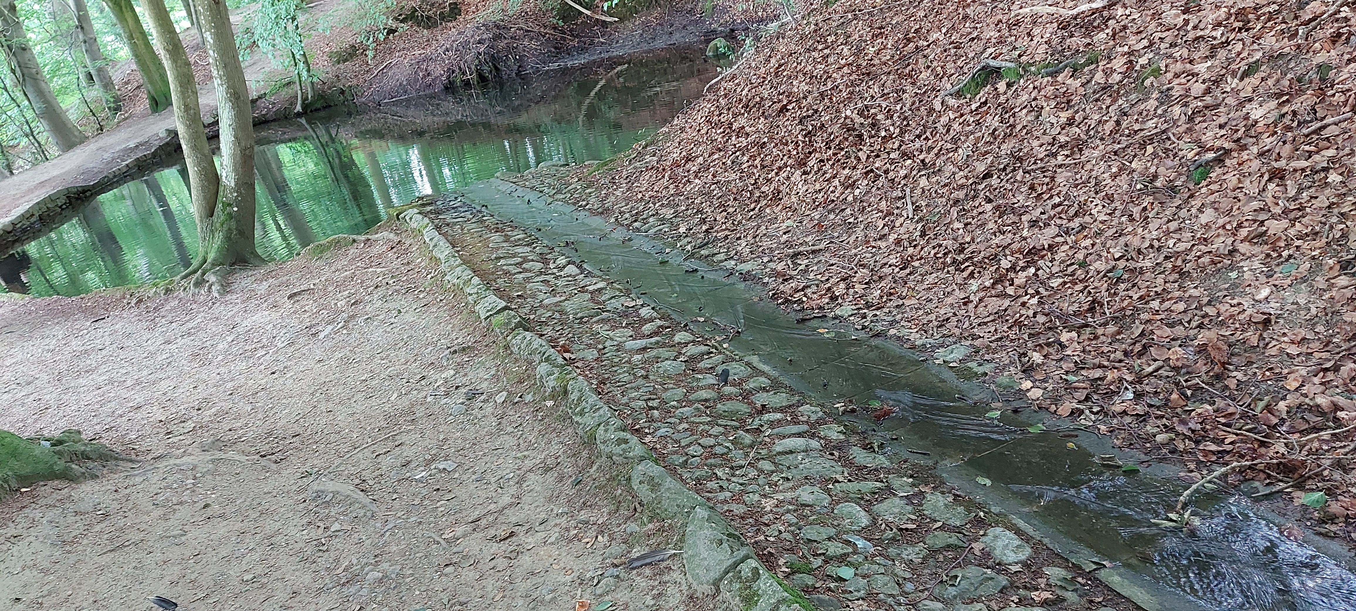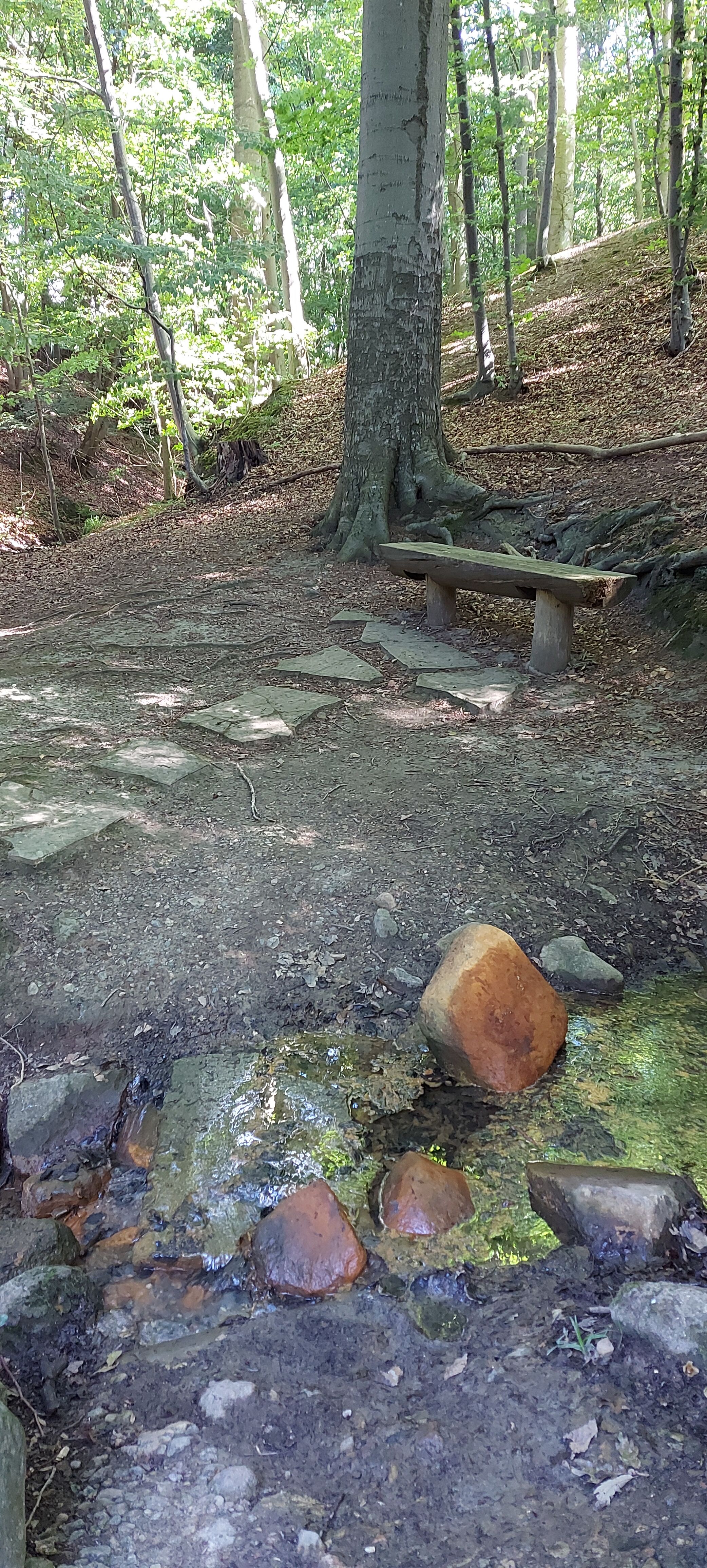 Ich hatte einen schönen passenden Parkplatz am Wildgehege gefunden und bin zum Rundweg Dieksee gestartet. Ein Abstecher zur Quelle der gebrochenen Herzen war natürlich auch drin, soviel Zeit muss sein. Leider hatte ich zunächst den Garmin-Tracker vergessen einzuschalten. Und als ich auf dem Rückweg von eben dieser Quelle dies nachholen wollte, war ich schon wieder in einem GPS-Loch und bekam sofort 82,34 km angezeigt. Es dauerte eine ganze Weile, bis ich einen vernünftigen Start hatte.