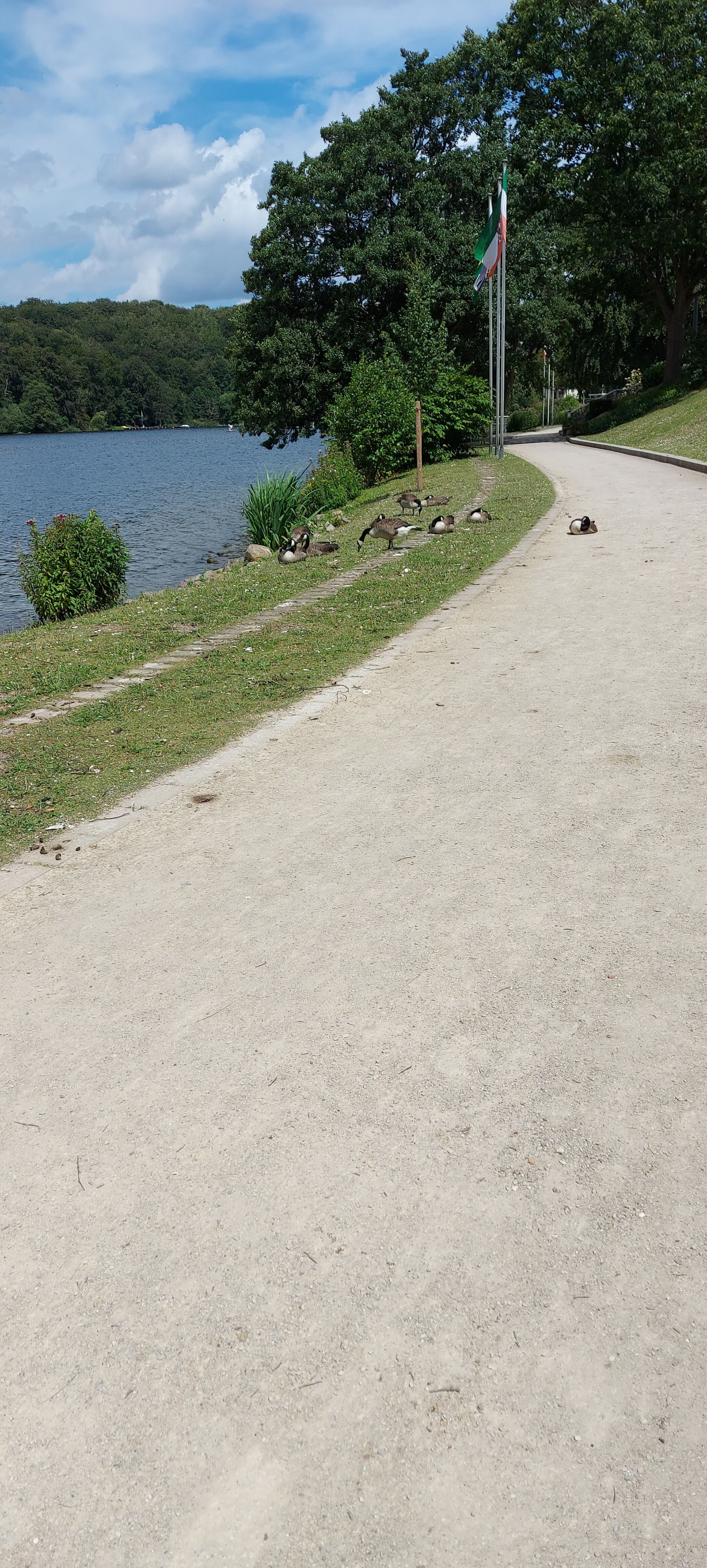 Alles zusammen war die Tour aber doch sehr schön und entspannt. Wie auch schon am Vortag hatte ich unterwegs eine schöne Bank für eine Mittags-Rast gefunden und mein Brot vom Frühstück verzehrt. Am Parkplatz angekommen, gab es dann noch einen Müsliriegel zur Stärkung. Nach dem Schuhwechsel und abzippen der Hosenbeine ging es dann auf die Heimfahrt. Eine Pause habe ich dann noch am Ranzauer See in Barmstedt eingelegt und mir im Seegarten Kaffee & Kuchen gegönnt. Eigentlich wollte ich ja auf die Schlossinsel, habe aber der falschen Weg genommen und ehe ich mich versah, hatte ich auch diesen Weg umrundet. Damit bin ich in dieser Auszeit rund 55 km – 60 km gelaufen und habe 4 Seen in 3 Tagen umrundet.