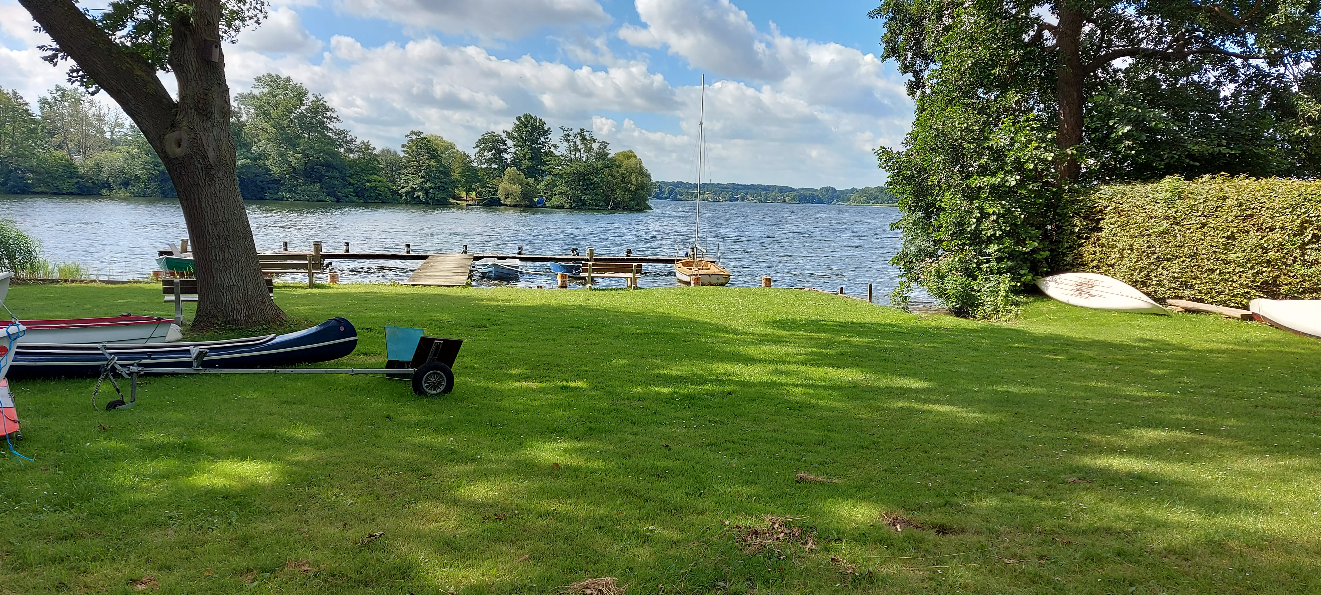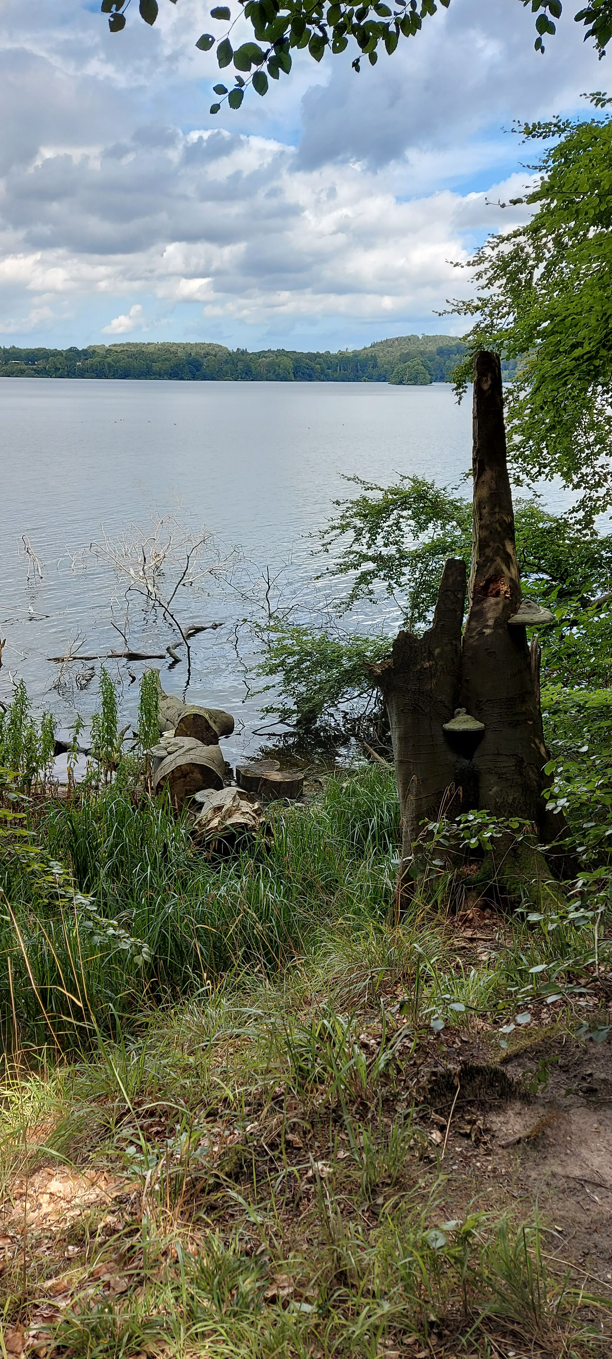 Leider ging der Weg ziemlich lange in der Nähe der Straße, später sogar auf der Straße entlang. Erst auf der Südseite des Sees wurde es schön zum Wandern. Ich hätte doch der 2. Eingebung folgen sollen: Von Malente aus mit dem Schiff nach Timmdorf oder Niederkleveez fahren und dort erst die Wanderung starten. Aber dann wäre ich ja nicht ganz um den See GELAUFEN.