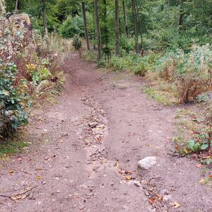 Es war zwar recht frisch und keine Sonne, aber trocken. Gutes Laufwetter. Aber gut, dass ich jetzt besser beschuht bin. Auf Halbschuhen wäre das eine Katastrophe geworden. Es gab breite Wege, steile Wege rauf oder runter, schmale Pfade auf und ab. Bin stolz und zufrieden: Habe mich nicht verlaufen, Der weg war zwar länger, aber das lag an momentanen Wegsperrungen wegen Forstarbeiten. Den Matsch mochte ich sogar meinen Wanderstiefeln nicht zumuten.
