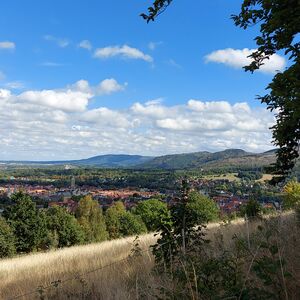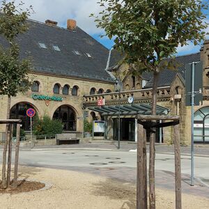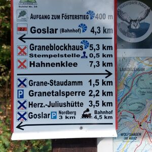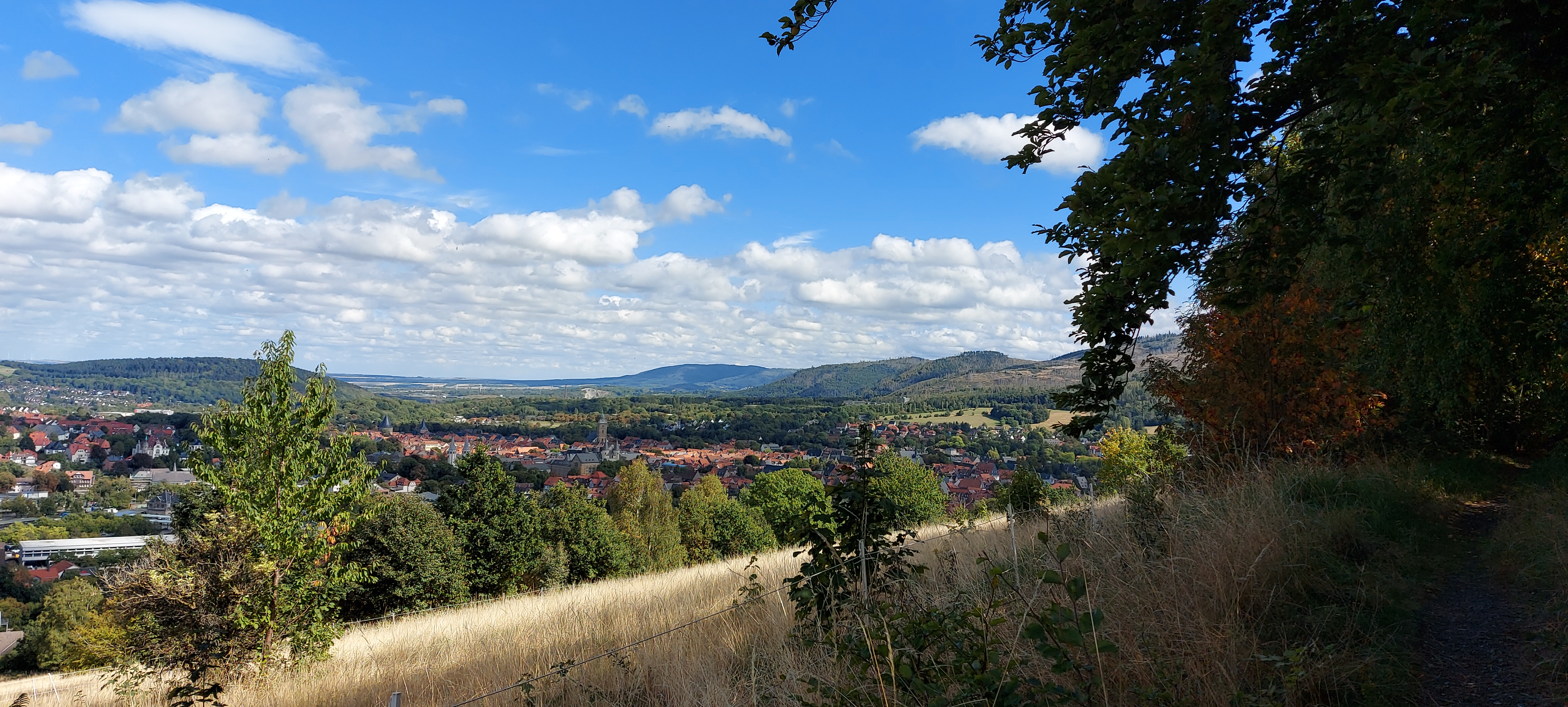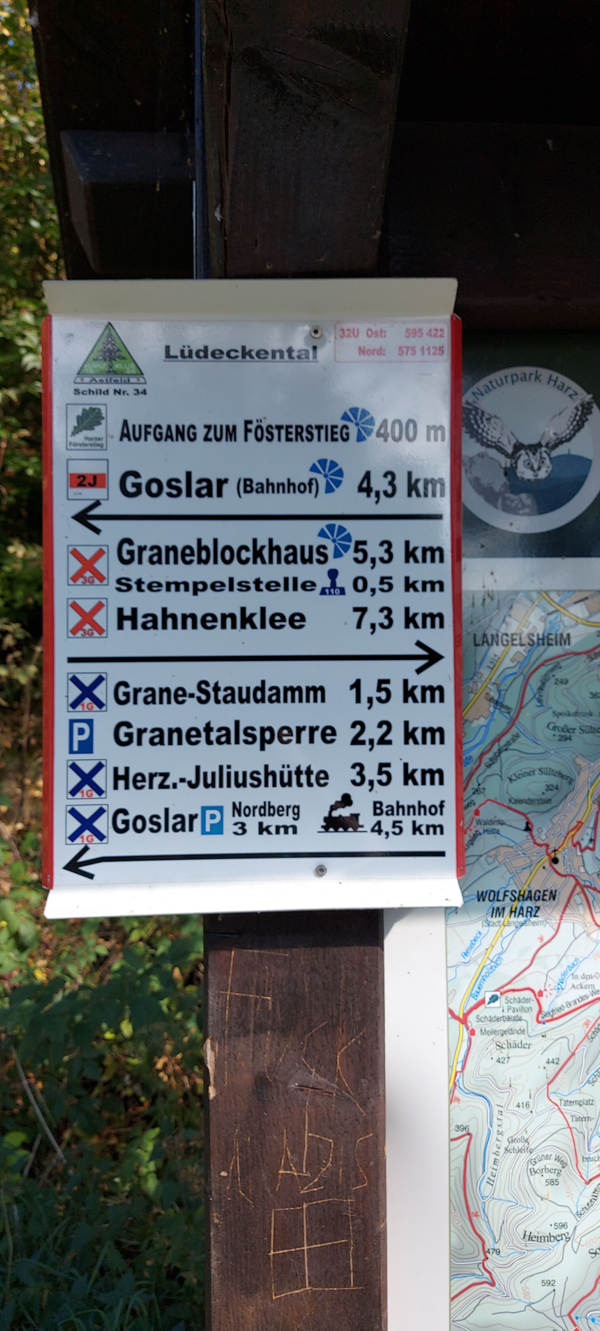 Sonst verlief die Hinreise planmäßig, keine nennenswerten Verspätungen. Damit war ich sogar noch vor der anvisierten Ankunftszeit in Goslar, also noch einen Imbiss mit Blick auf das historische Bahnhofsgebäude und dann gaaanz langsam Richtung Pension. Natürlich ging es gleich stetig bergauf. Wie könnte es im Harz anders sein. Dafür war mein Zimmer aber schon fertig auch vor der Zeit, und ich konnte meine Sachen unterstellen, meinen Rucksack kurz auf Wanderung umstellen und meine erste Tour dieser Auszeit starten.