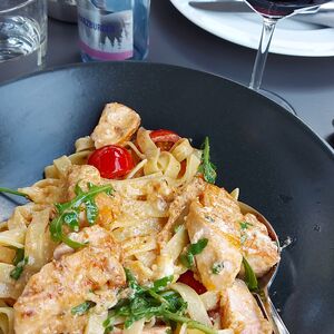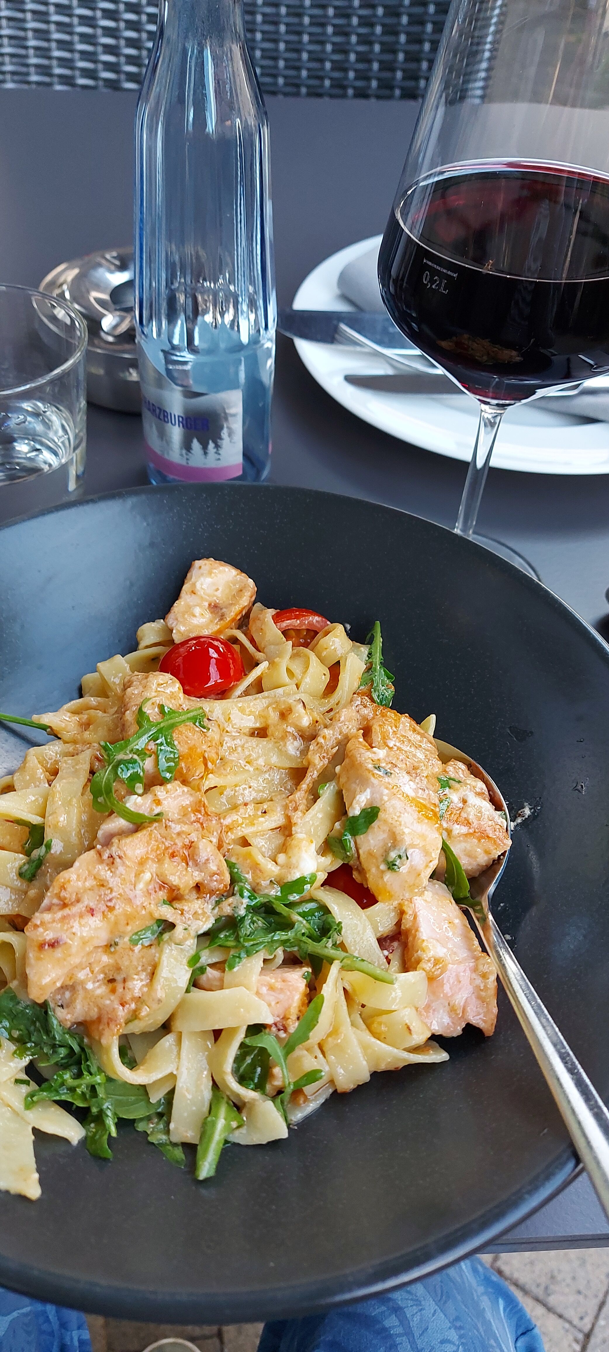 Abends dann zum Essen Richtung Altstadt ins "Schwarze Schaf", eine sehr gute Wahl. Ich konnte sogar noch draußen sitzen. Leckere Nudeln mit Lachs und ein Gläschen Roten.