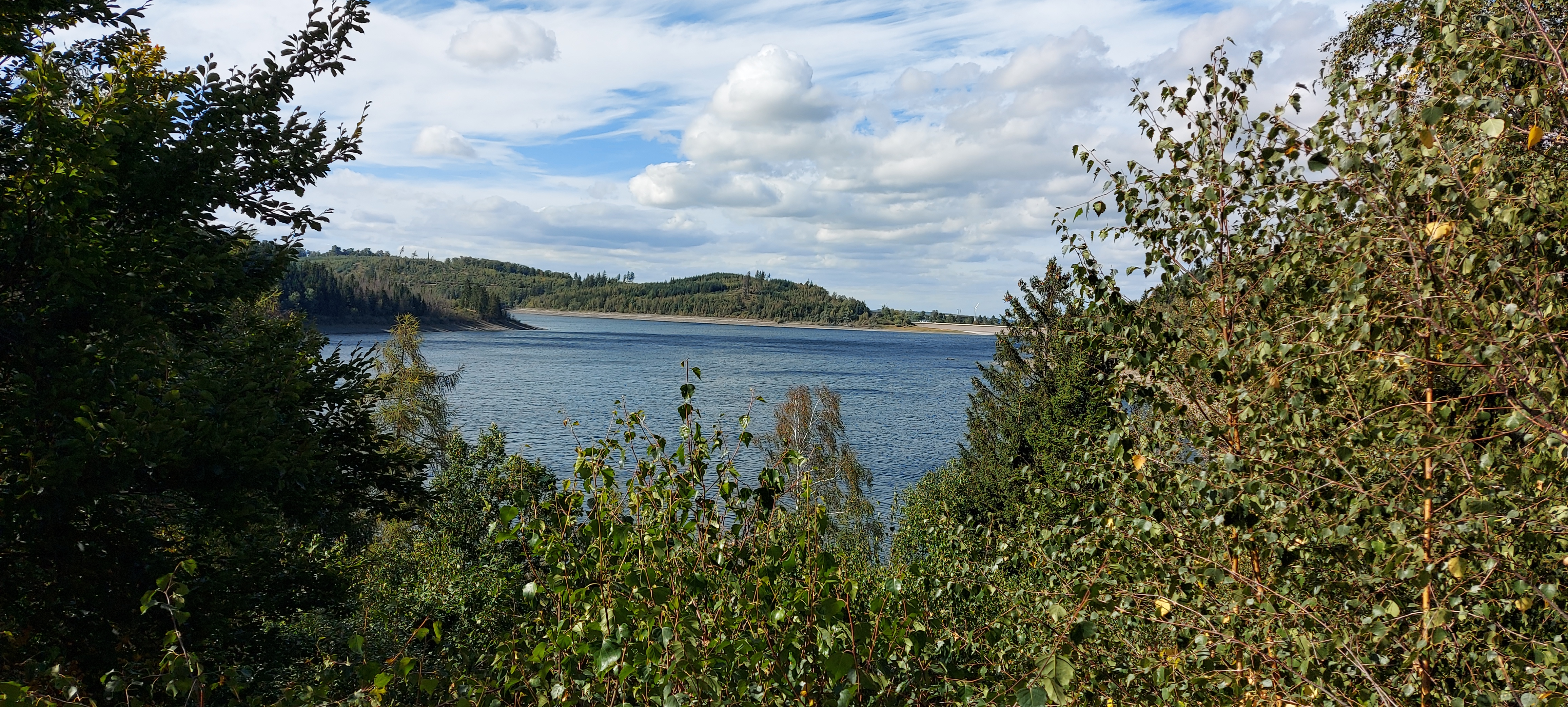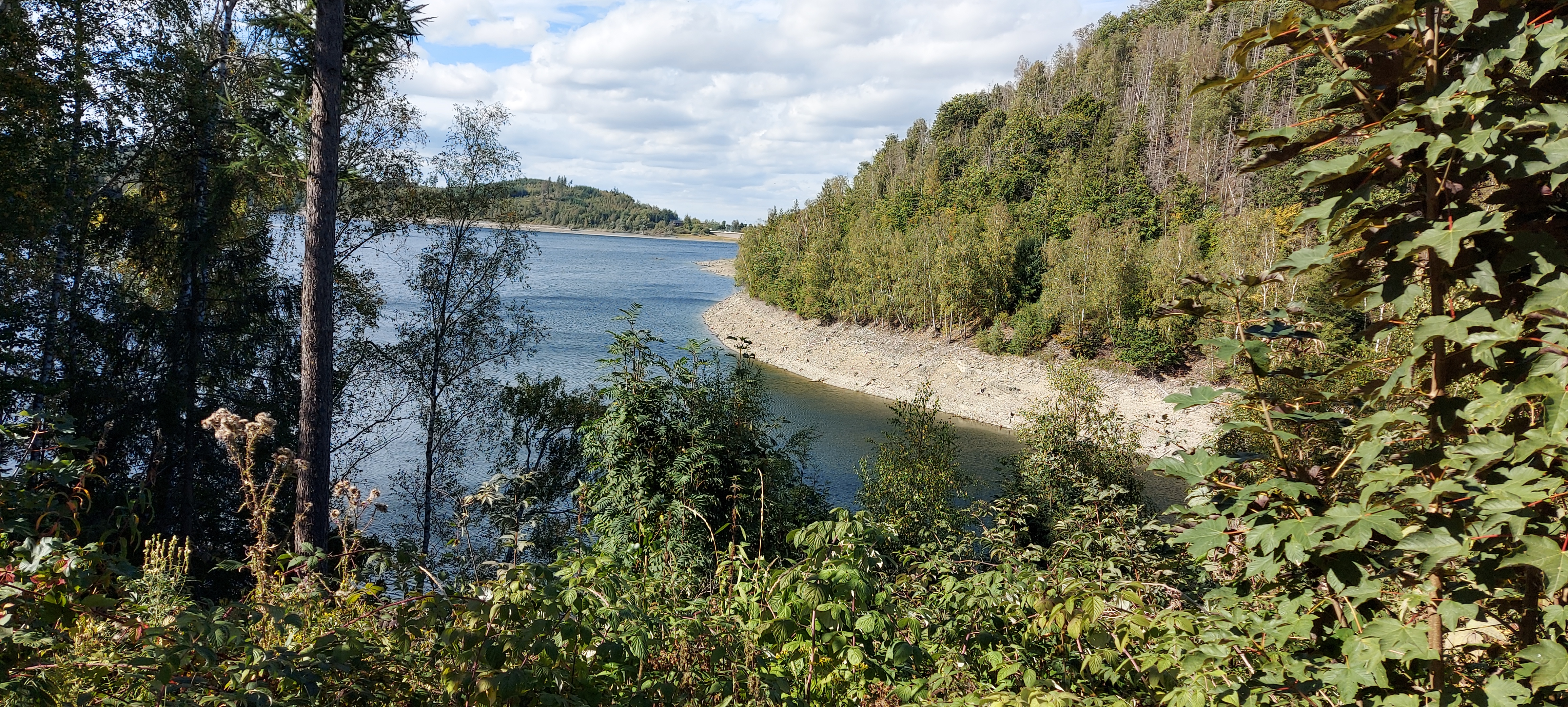 Doch weiter des Weges zur Granetalsperre, immer auf dem Försterstieg. Dort angekommen gab es ein kurzes Päuschen und einen netten Plausch mit einer jungen Frau, die sich dort auch von ihrer Wanderung ausruhte. von ihr bekam ich sogar noch Tipps für den nächsten Tag. Den Rückweg wollte ich eigentlich über einen anderen Weg nehmen, musst aber nach einer Weile feststellen, dass ich meine Garminuhr verloren hatte. Viel Hoffnung hatte ich ja nicht, aber ich wollte es doch versuchen und bin den Weg zur Stempelstelle zurück gelaufen. Dort war ich beim Weggehen kurz ins Stolpern geraten... vielleicht...