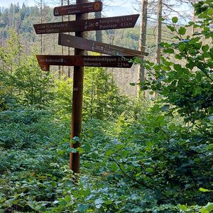 Wanderstempel: 217 Sonnenkappe Oderteich, 155 Rehberger Grabenhaus, 123 Gaststätte Rinderstall, 148 Naturmythenpfad