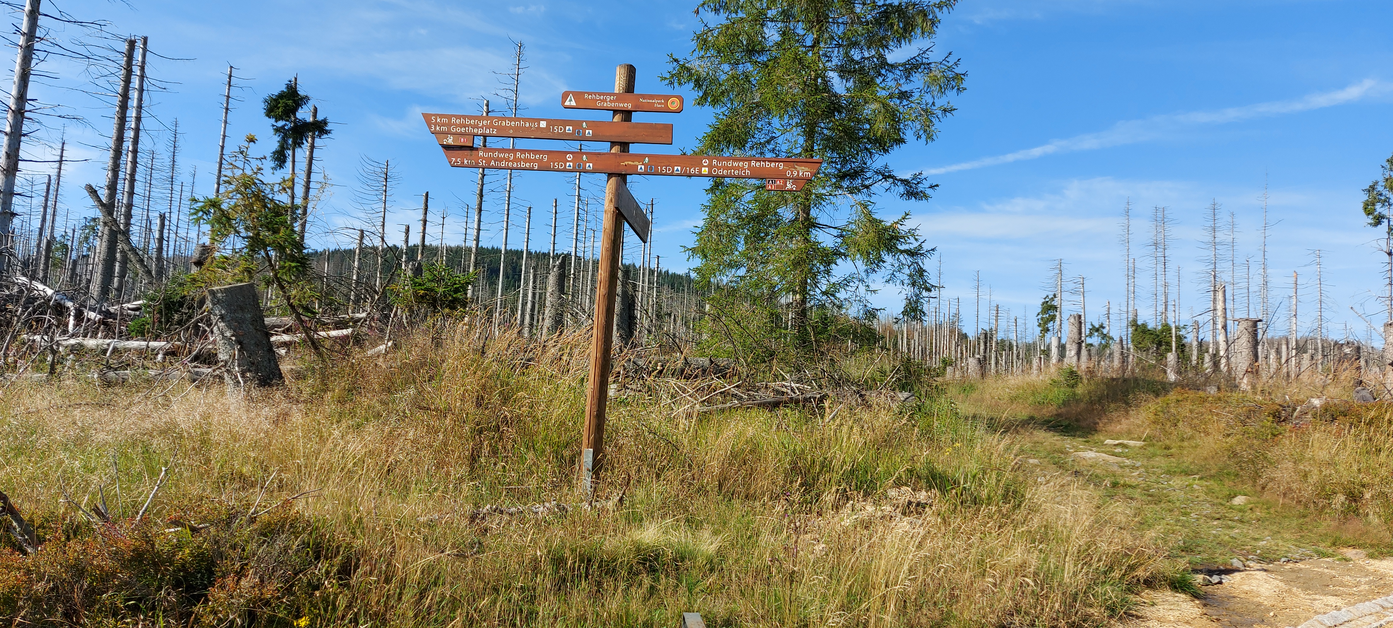 Eigentlich war das Ilsetal und die Ilsefälle unser Ziel. K2 hatte bereits eine wunderschöne Tour erstellt, immer daraus achtend, das die Stempelausbeute maximal wird, die Steigungen jedoch nicht. Leider hatten wir nicht die Buspläne am WE brücksichtigt… Es fährt am WE einfach kein Bus nach Ilsenburg. Und Bahn war uns zu dumm. Bus ist in der Gästekarte enthalten, Bahn nicht. Und ohne Bus wurde die Tour zu lang. So ein Mist!